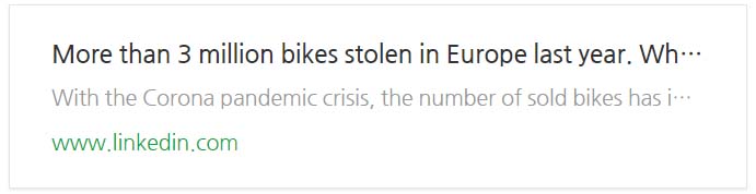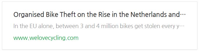 2020년 4월부터 11월까지 이 기간 동안 무려 113,000대의 자전거가 도난당하는 등 사상 최대 규모의 도난 신고가 접수되었다고 합니다.