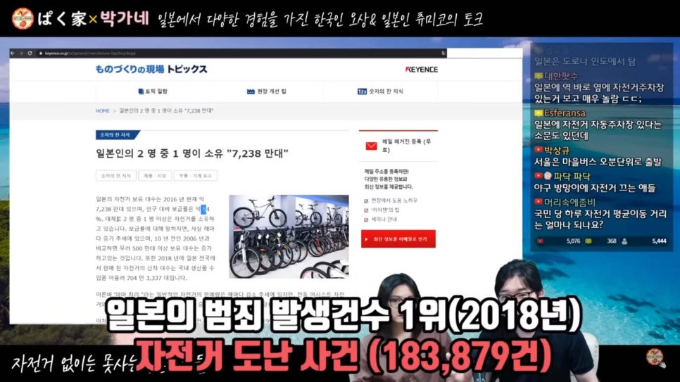 유튜브 <ぱく家(박가네)> 일본사람들에게 자전거가 생활필수품인 이유