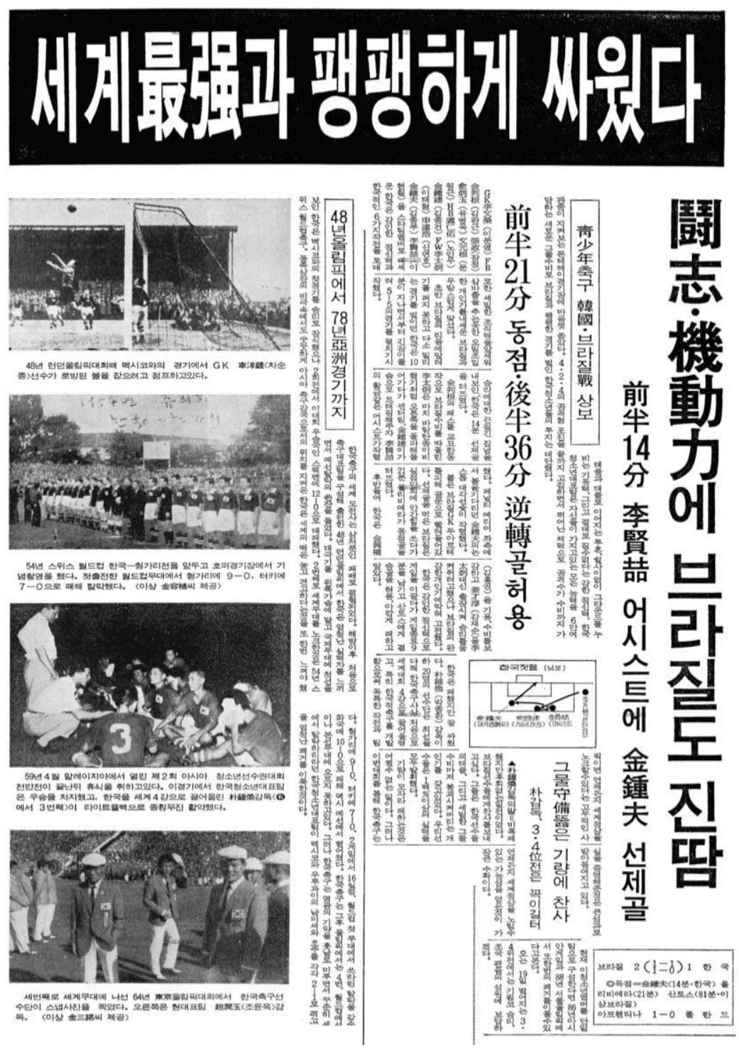그당시에 4강전을 보기위해 학교에 TV를 들고가기도 했습니다.