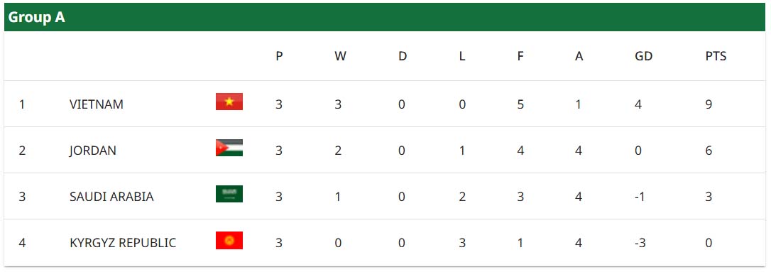 A조: 사우디, 베트남, 요르단, 키르기스스탄