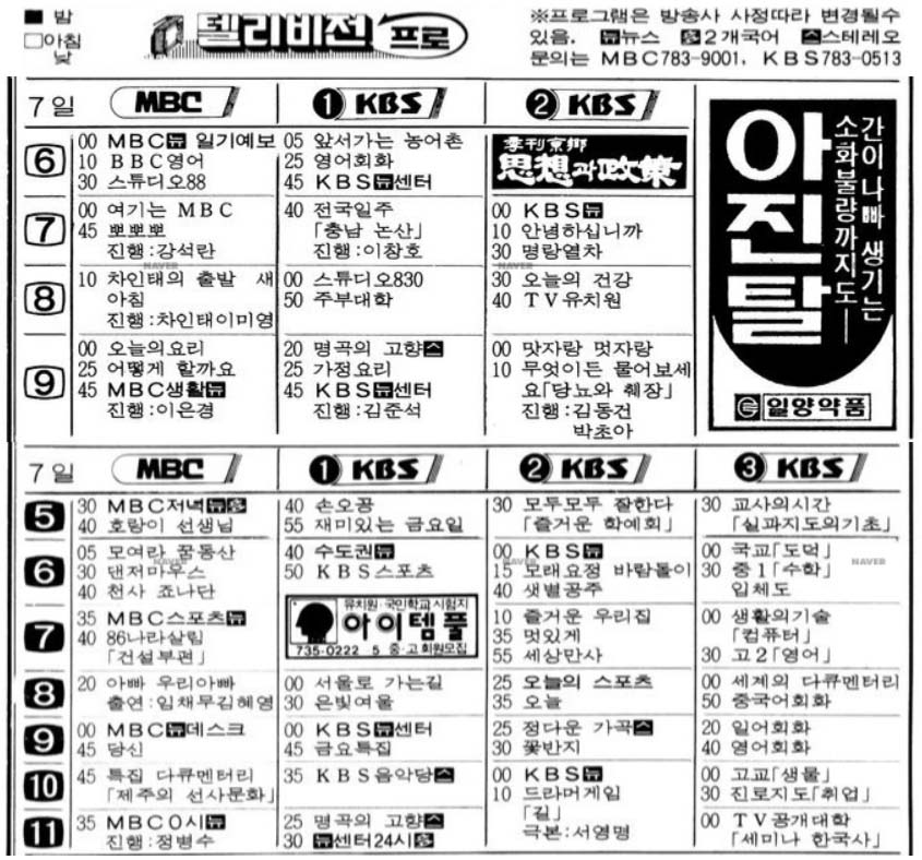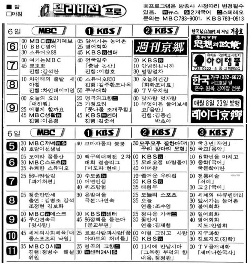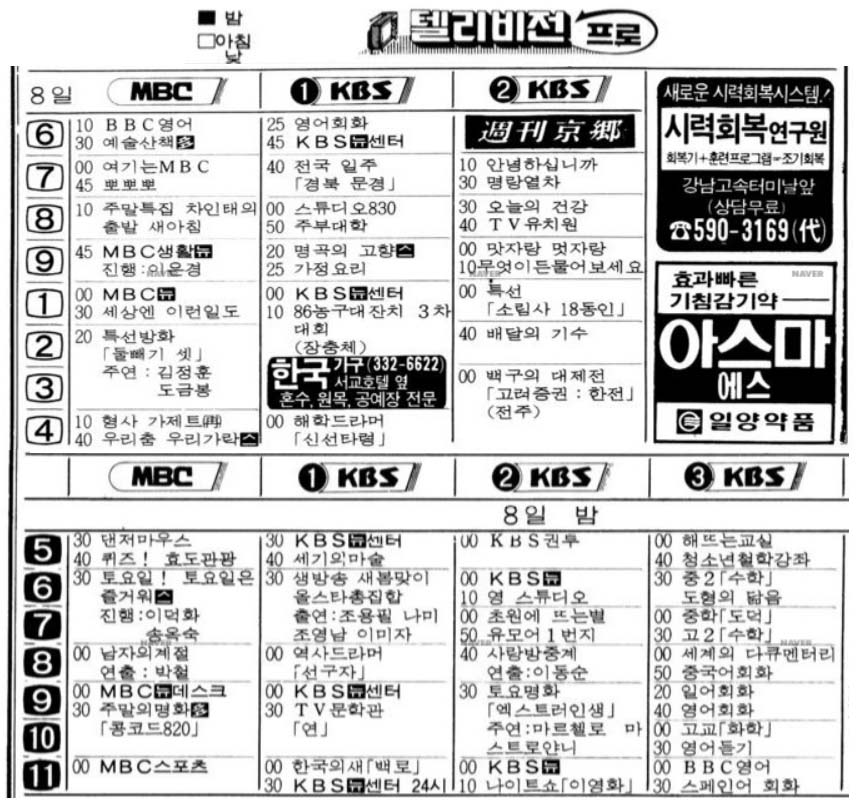 지금처럼 종편도 없었고, 케이블도 그저 재방송정도하는 다양하지도 않았죠. 방송국도 SBS도 없었던 2개였습니다.